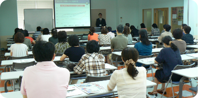 講習会中の勉強の進め方やご家庭での接し方を全体で説明します。