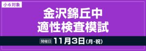 能開では11月3日(月・祝)に金沢南本校にて「金沢錦丘中適性検査模試」を実施します。錦丘中適性検査と同形式、同傾向の問題に取り組みます。また、面接指導(講義+模擬面接)も行います。この模試を通して現時点での課題を知り、今後の学習に活かしてください。