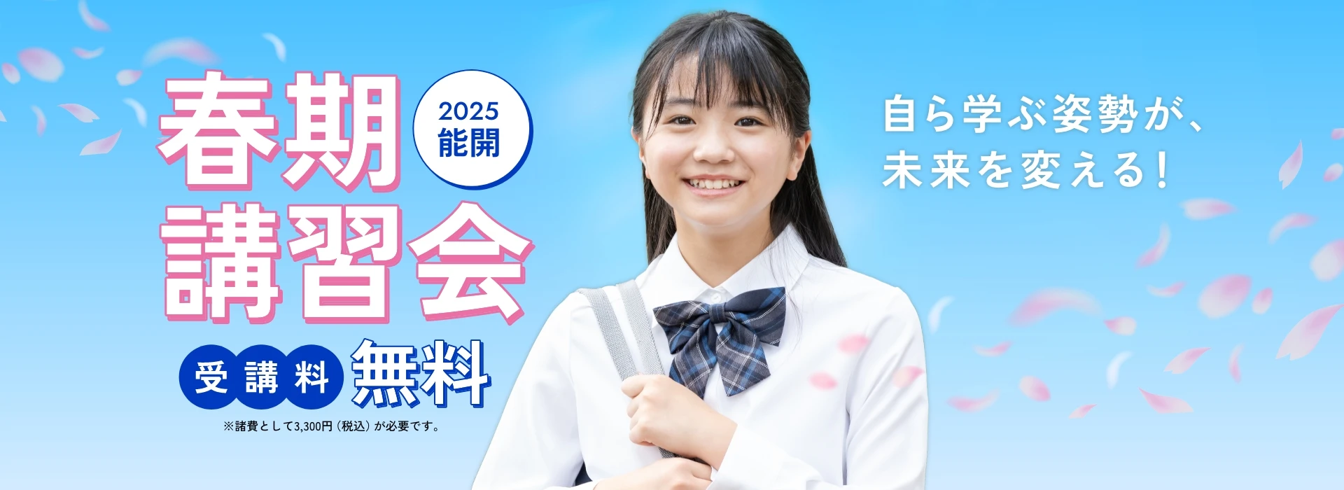 「中学入学準備講座」を受講し、3月または4月から能開に入会される方は、下記の春期講習会も受講料無料です。