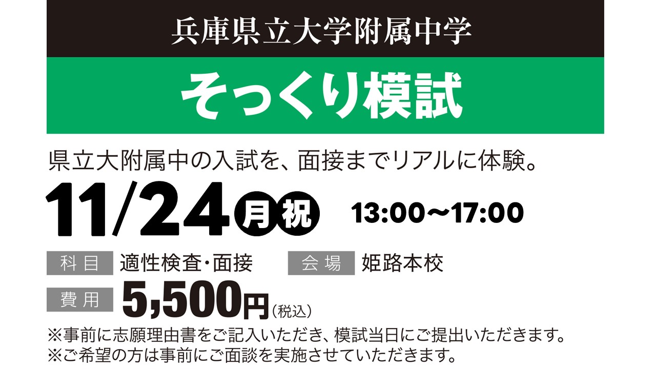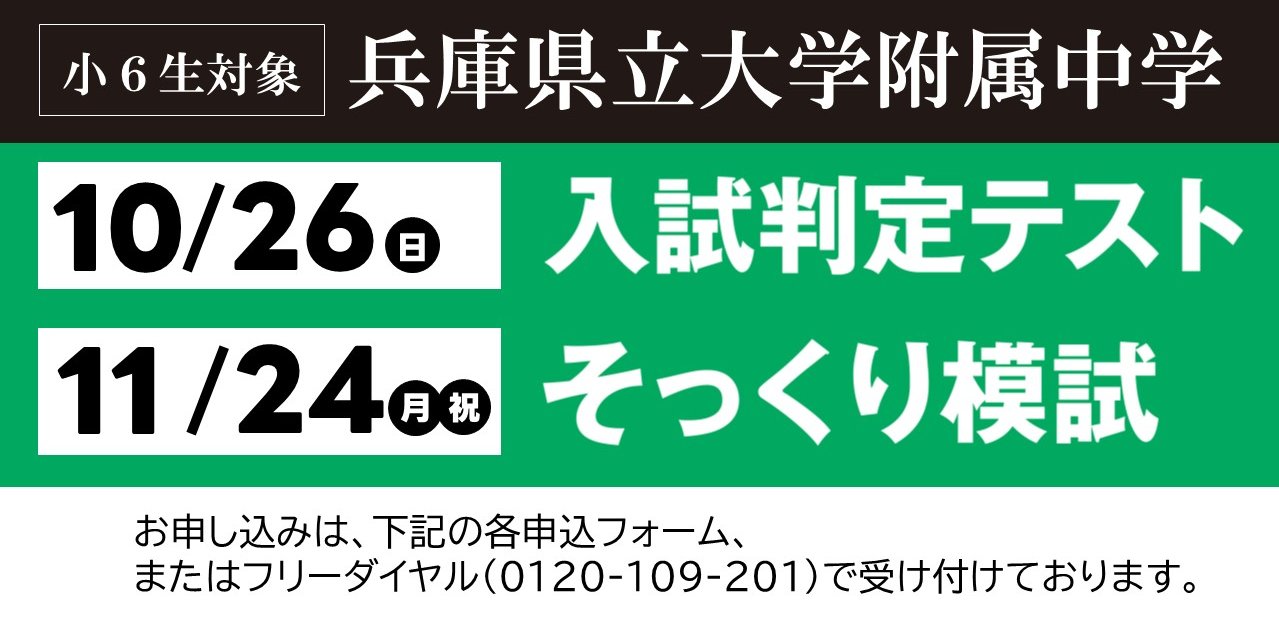 小6生・兵庫県立大附属中学「入試判定テスト」「そっくり模試」申込受付中